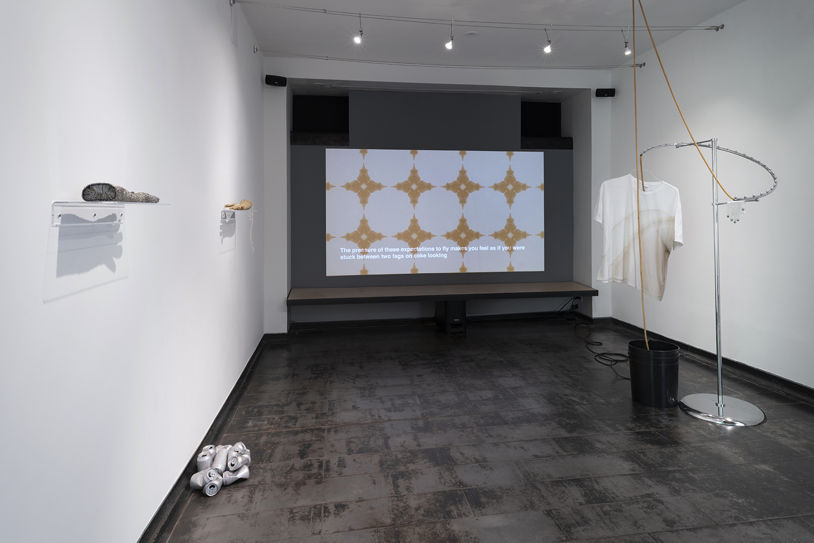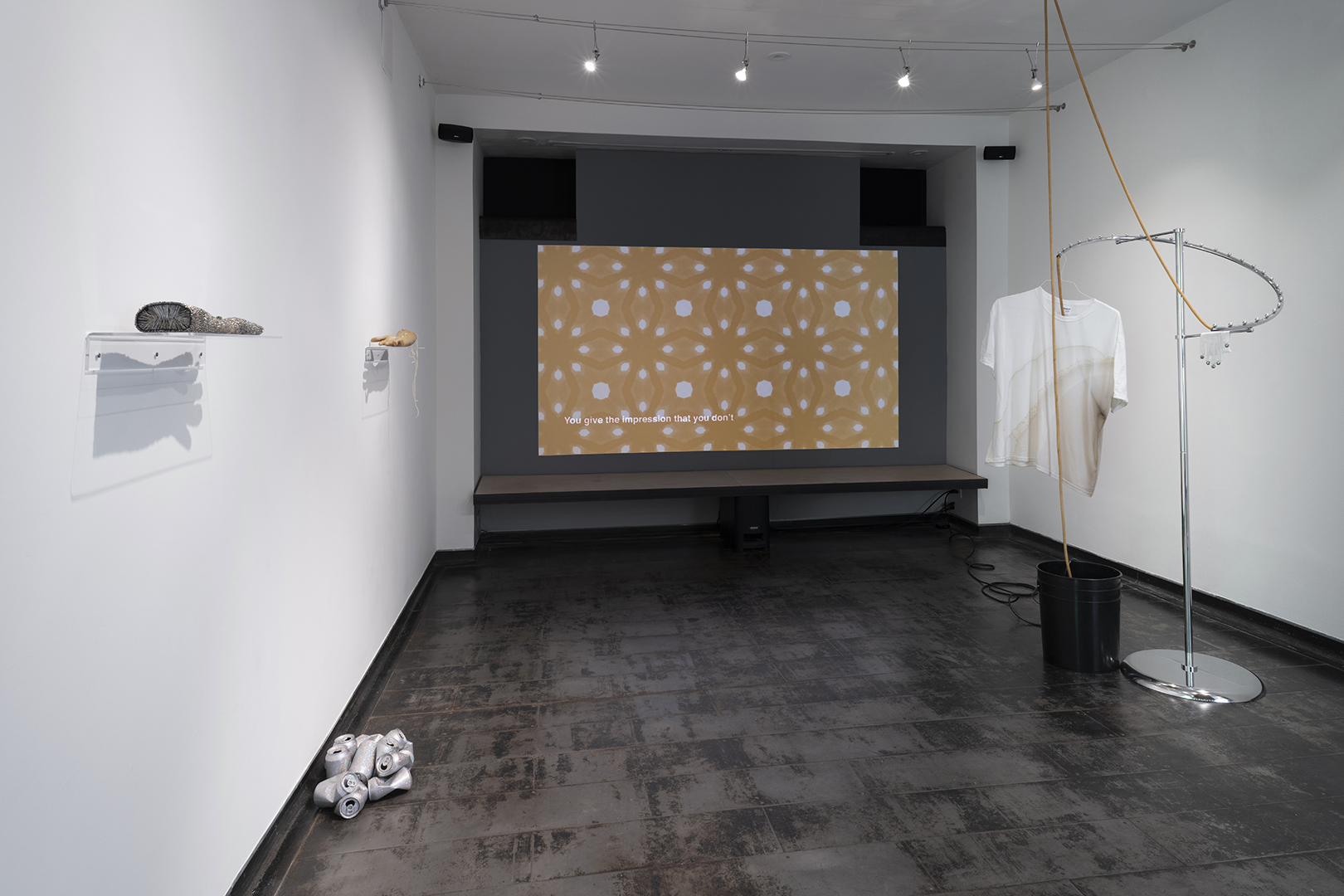 There’s a tiny space between feeling and knowing. Worlds of engagement are possible within that space. In the realm of the social, senses can take over, words feel cliché, histories run up against the present-tense. Feel Me? offers up a few feminist approaches to the sensorial contours of the social. These material manifestations — skin sores, saliva, blood and sweat — and take poetic shape in found and made objects that quietly ask us to reconsider the things we feel and the things we leave behind for others to feel.